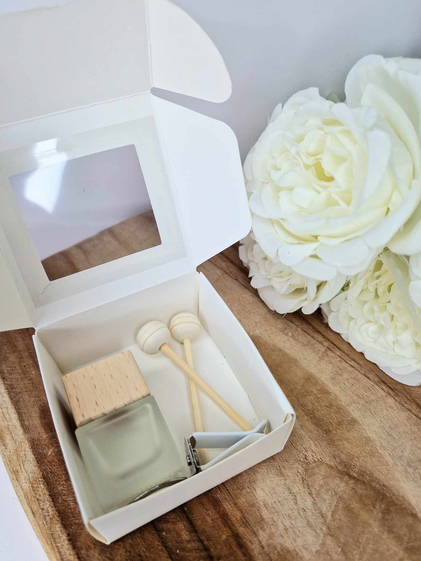 Enlevez l'opercule du flacon de diffusion, assemblez le tout, et vous n'avez plus qu'à l'accrocher sur votre grille de ventilation et profiter de la senteur choisie par vos soins.
